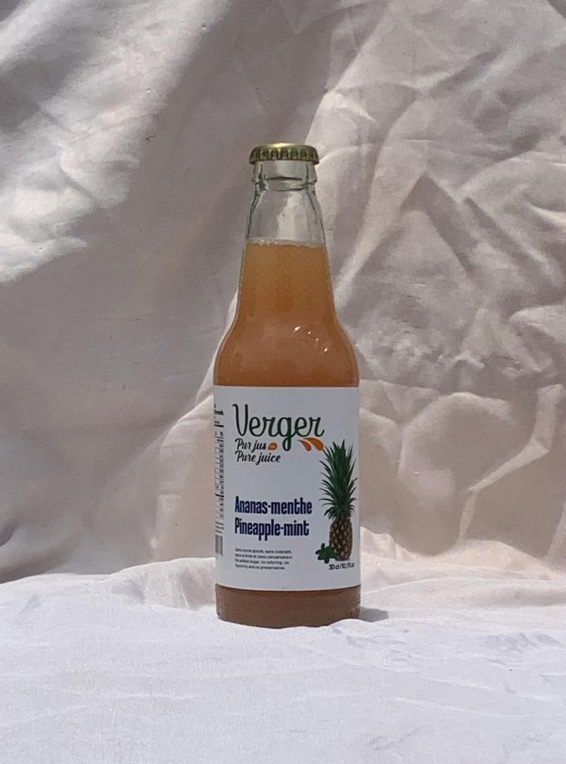Pur jus d'ananas pasteurisé infusé aux feuilles menthe fraiche - longue conservation - conditionnement en verre - lot de 6 bouteilles